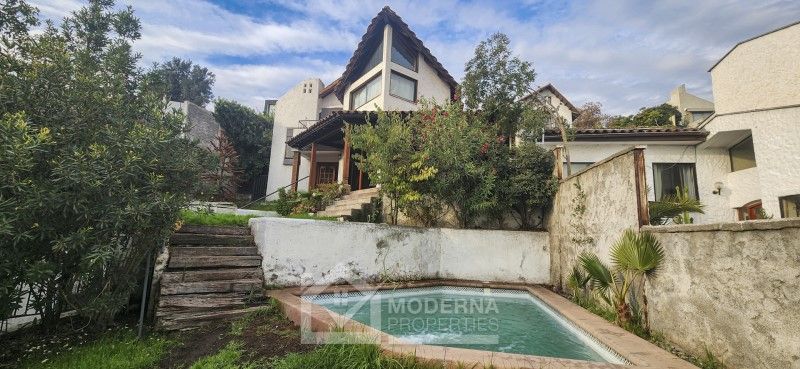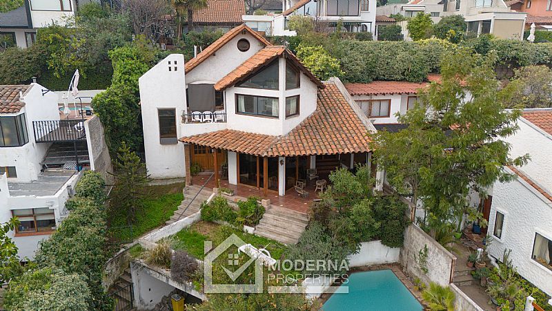 Esta propiedad cuenta con un terreno de 420 m2 y una construcción de 359 m2 sobre la ladera del cerro junto a una gran piscina de 20 m2, lo que permite una maravillosa vista a Santiago.