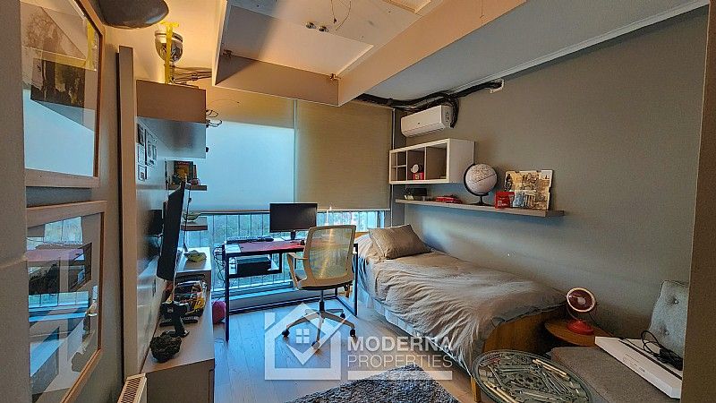 A la derecha del hall de entrada se encuentra el segundo dormitorio, también con aire acondicionado y baño completo. Al final del pasillo se ubica la suite principal, que incorpora la terraza ampliada como sala de estar, un amplio walking closet y baño privado.