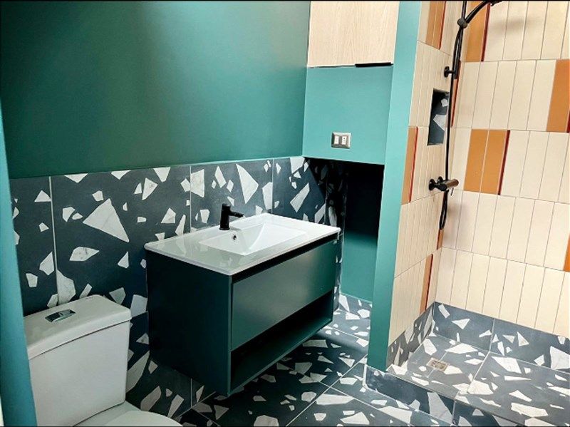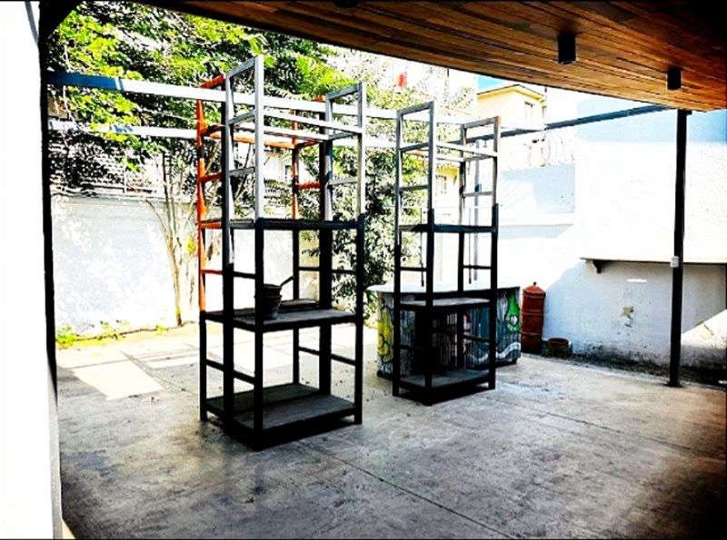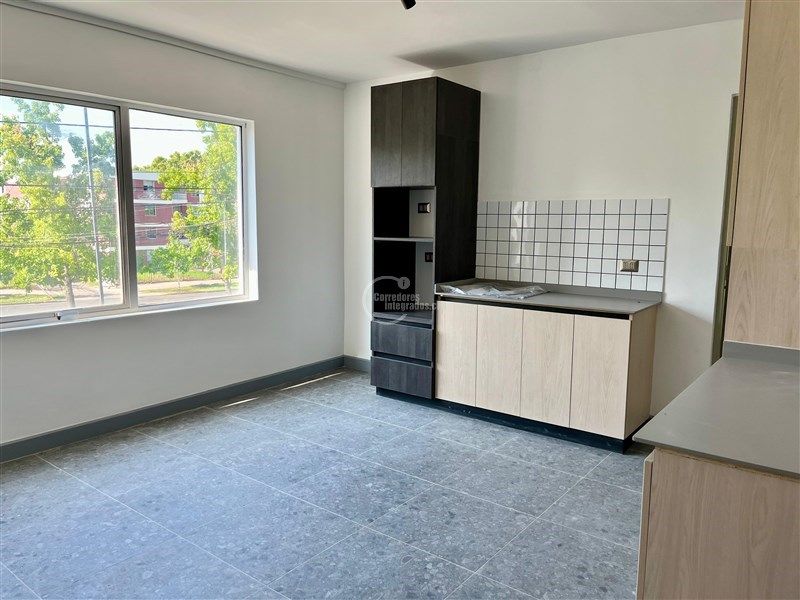 Una planta libre , más otras dos áreas grandes , cada área con cocina americana, muebles de cocina, encimera, lavaplatos, en un gran espacio, con termo individual, más baño con ducha cada uno y una oficina . Toda la casa termo panel.